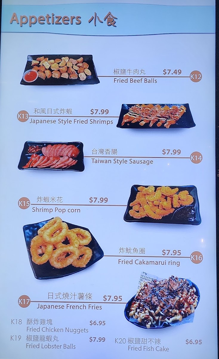 Light Bites: Complementing the sweet offerings, the menu includes savory items such as Japanese-style takoyaki and chicken wings for customers seeking a snack or light meal alongside their desserts and drinks.